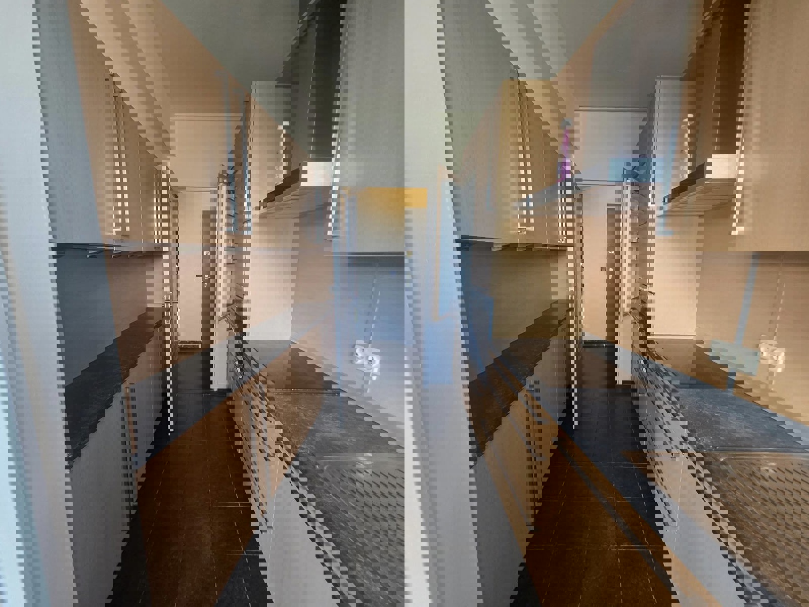 - Appartement : Hall d'entrée - Grand & lumineux séjour avec vue sur Rive Gauche - 1er balcon avec vue sur rive gauche - grande cuisine équipée sur 2 pans de murs,