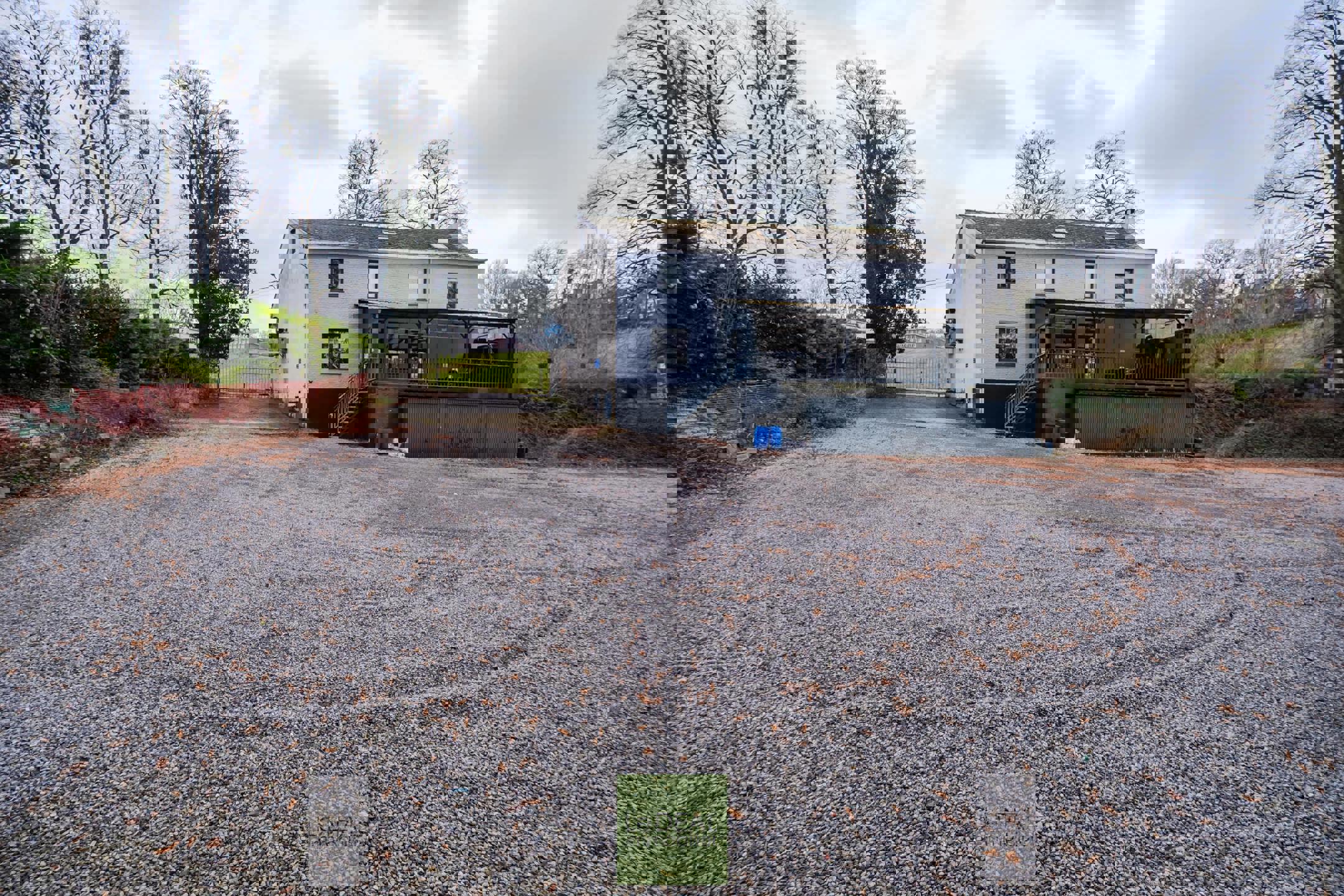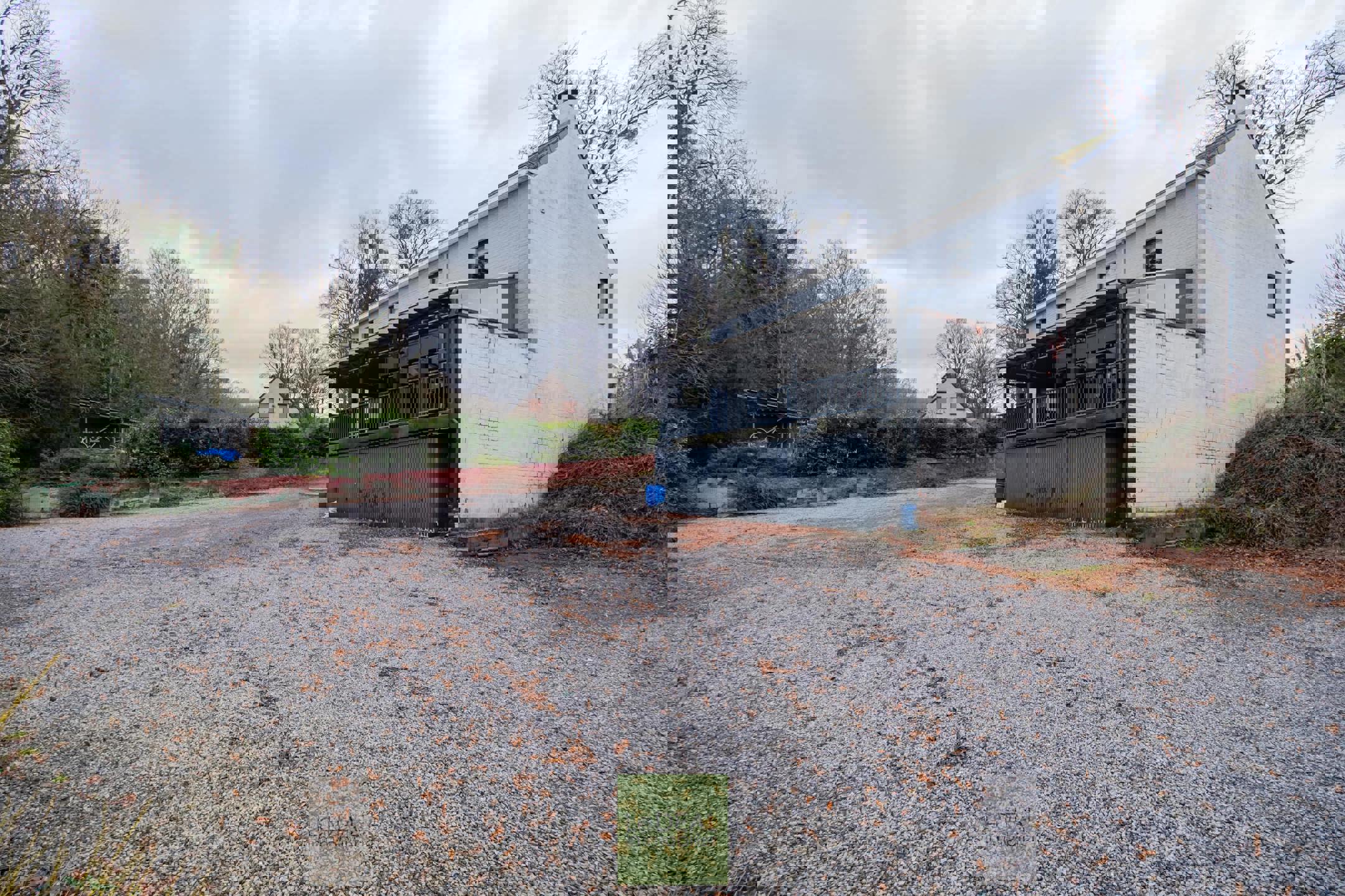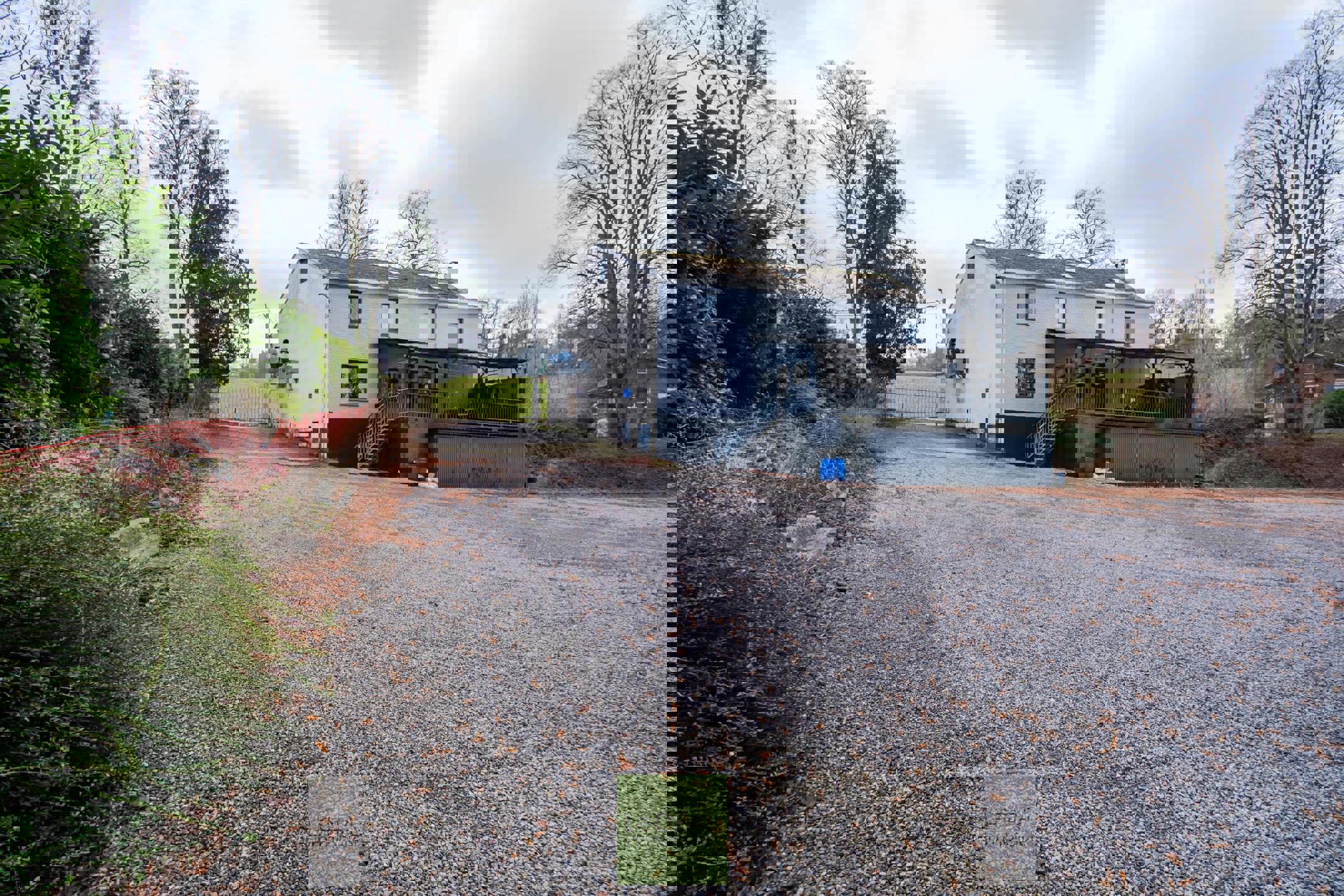 • Grand parking privatif à l’arrière, bordé d’arbres.