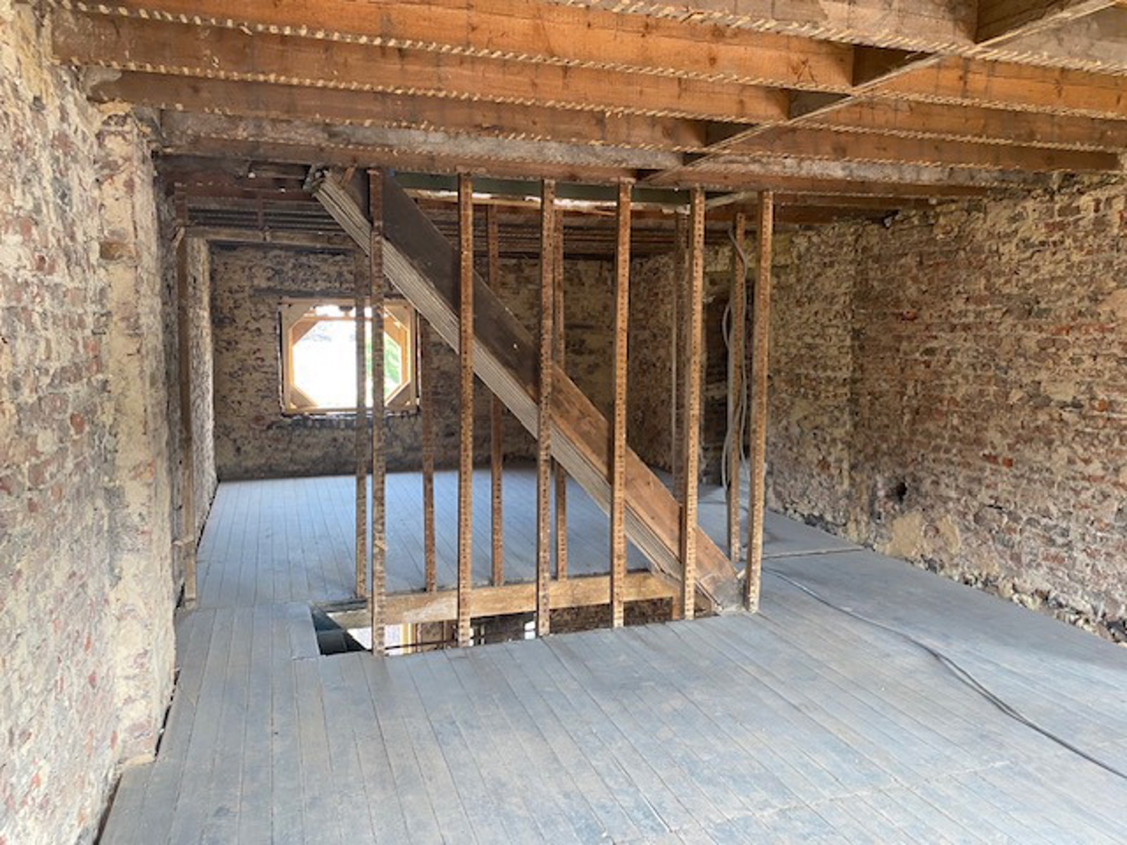 STABILITE DU BÂTIMENT CONTROLEE PAR UN INGENIEUR CIVIL: STRUCTURE (EN ETAT) BONNE POUR 5 ANS. RENFORCEMENT A PREVOIR AU DEBUT DES TRAVAUX