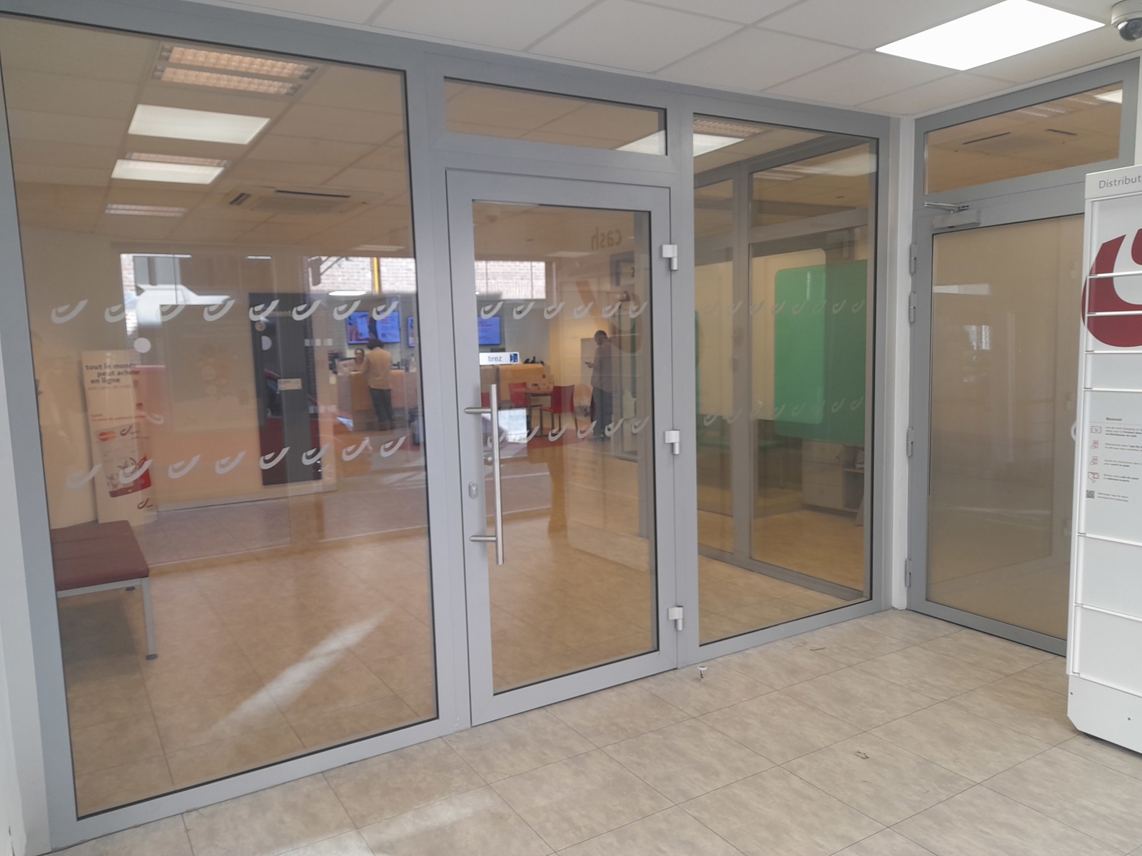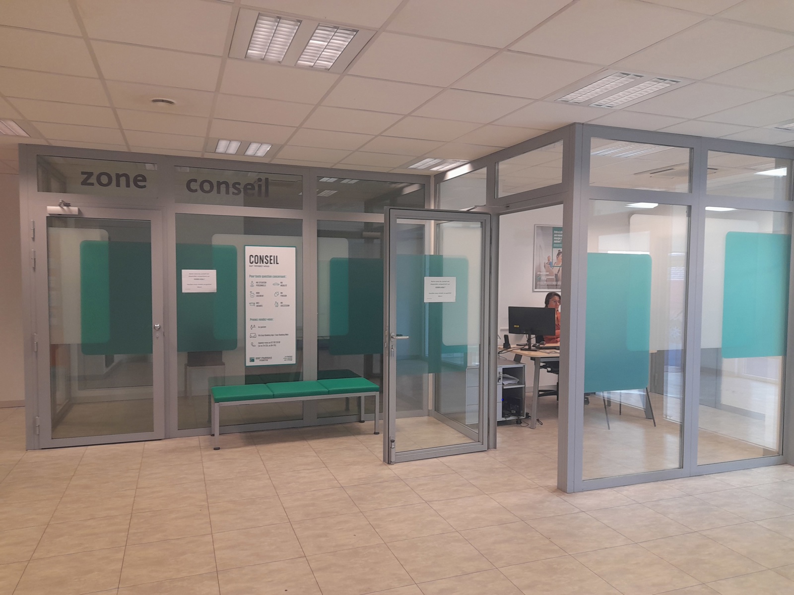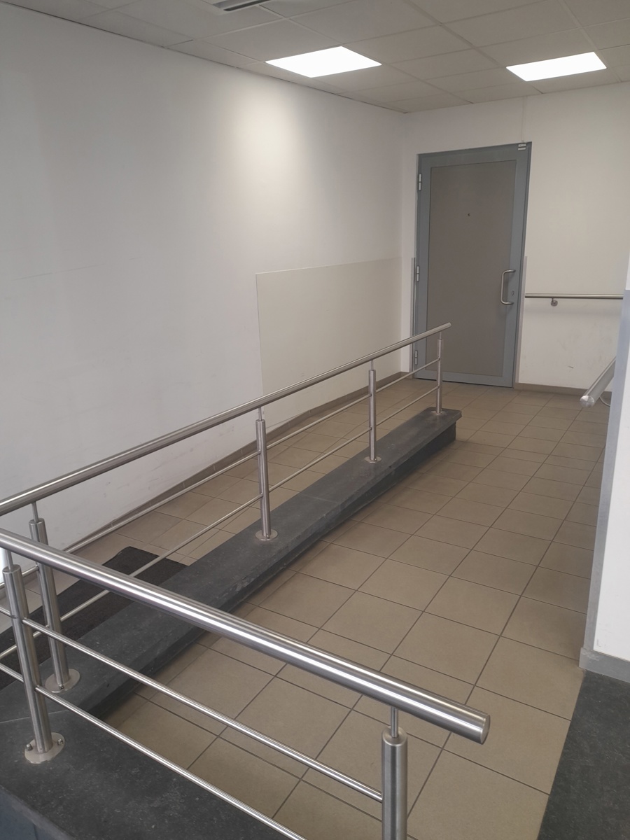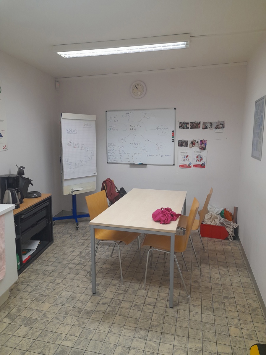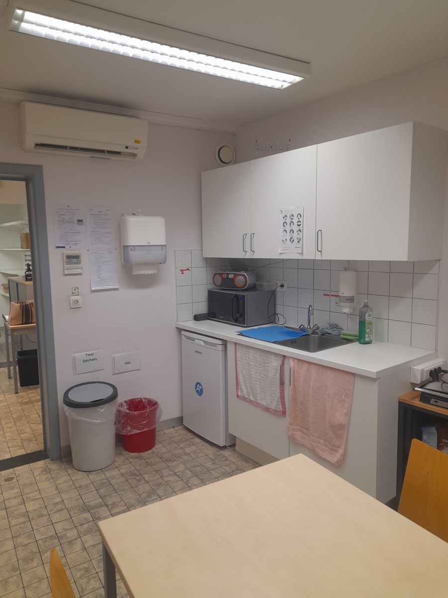 RDC: HALL D ENTREE, ZONE D'ACCUEIL, BUREAUX, SALLE PUBLIQUE AVEC GUICHETS, SANITAIRES (WC ET POINTS D'EAU), PETITE CUISINE ET ESPACE DETENTE, ESPACE TECHNIQUE POUR ARRIVER/DEPART MATERIELS