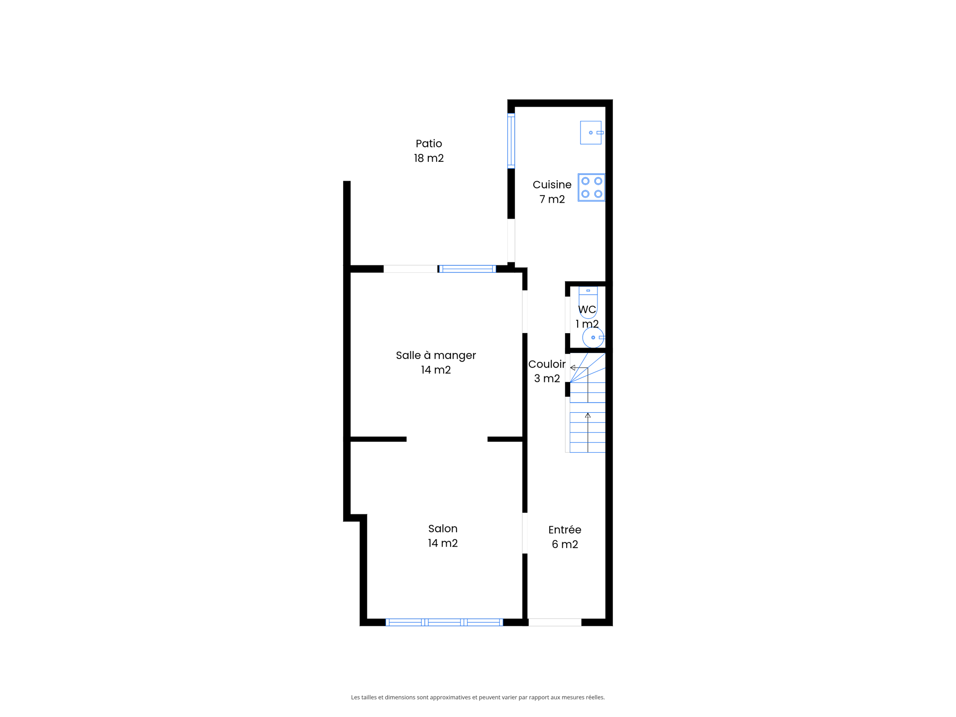 Au rez-de-chaussée, vous trouverez un hall d’entrée de 9 m², un living (salon de 12 m² et salle à manger de 11 m²), une cuisine semi-équipée de 6 m² donnant accès direct à la terrasse de 14 m² et au jardinet de 24 m², idéal pour profiter de l’extérieur.