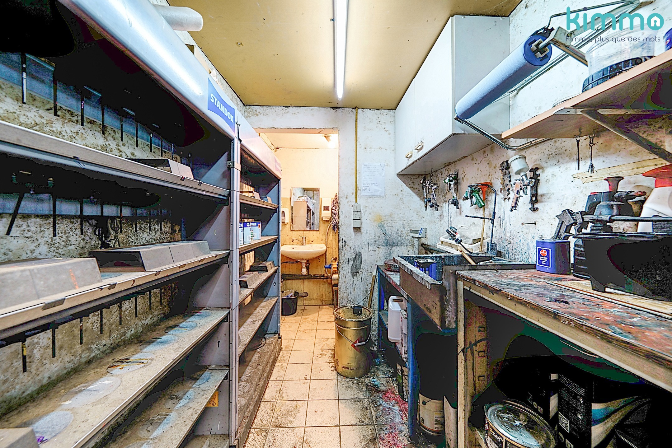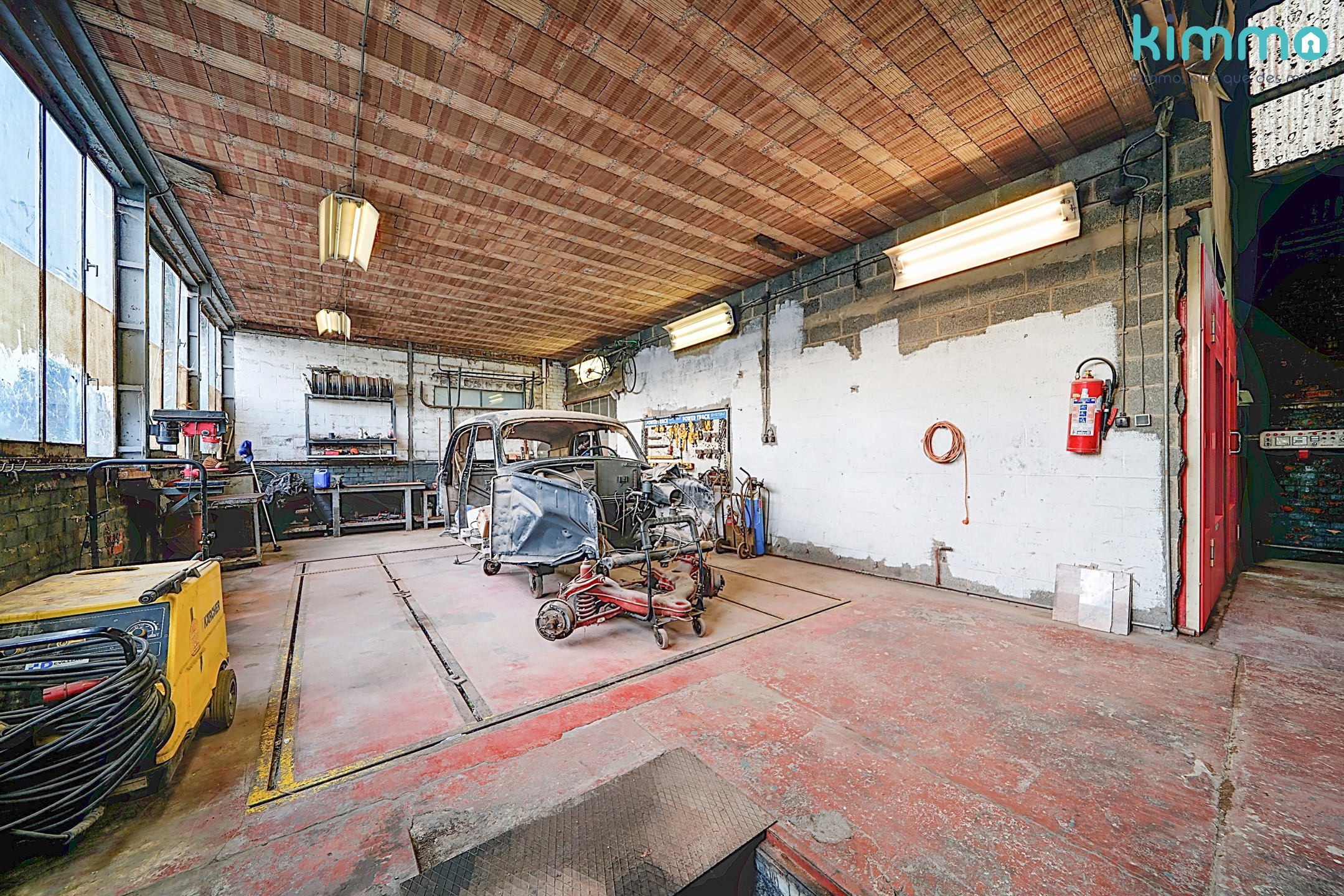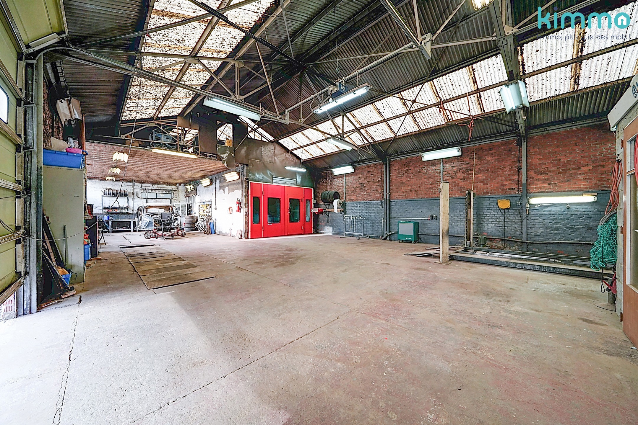 – Atelier principal : 171,7 m², hauteur ±5,5 m, sol béton, chauffage air pulsé au mazout.